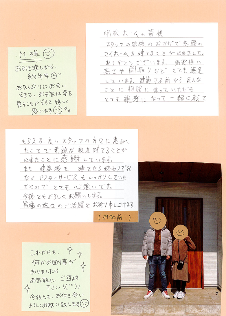 お引渡しから約半年、M様から実際に住んでみた感想をお聞きしました。